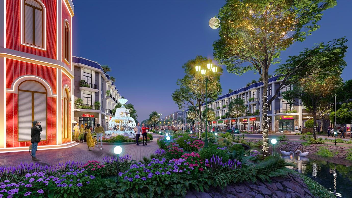 Dòng sản phẩm shophouse được bố trí dọc theo các tuyến đường lớn có lộ giới 18-25m, rất thuận tiện cho việc khai thác kinh doanh văn phòng, showroom hoặc dịch vụ F&B. Với thiết kế 1 trệt 2 lầu và phong cách kiến trúc Châu Âu, shophouse tại đây mang lại vẻ đẹp đẳng cấp và tiềm năng khai thác dòng tiền ổn định từ lượng cư dân nội khu lớn.