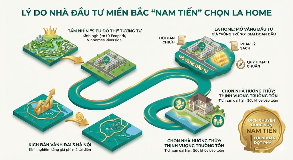 Các nhà đầu tư miền Bắc vốn nổi tiếng sành sỏi và am hiểu phong thủy đã nhanh chóng nhận ra bóng dáng của những “siêu đô thị” thành công như Ecopark hay Vinhomes Riverside tại LA Home. Họ hiểu rằng việc đầu tư vào một khu đô thị sinh thái bài bản ở giai đoạn đầu luôn mang lại biên độ lợi nhuận đột phá khi hạ tầng xung quanh hoàn thiện.