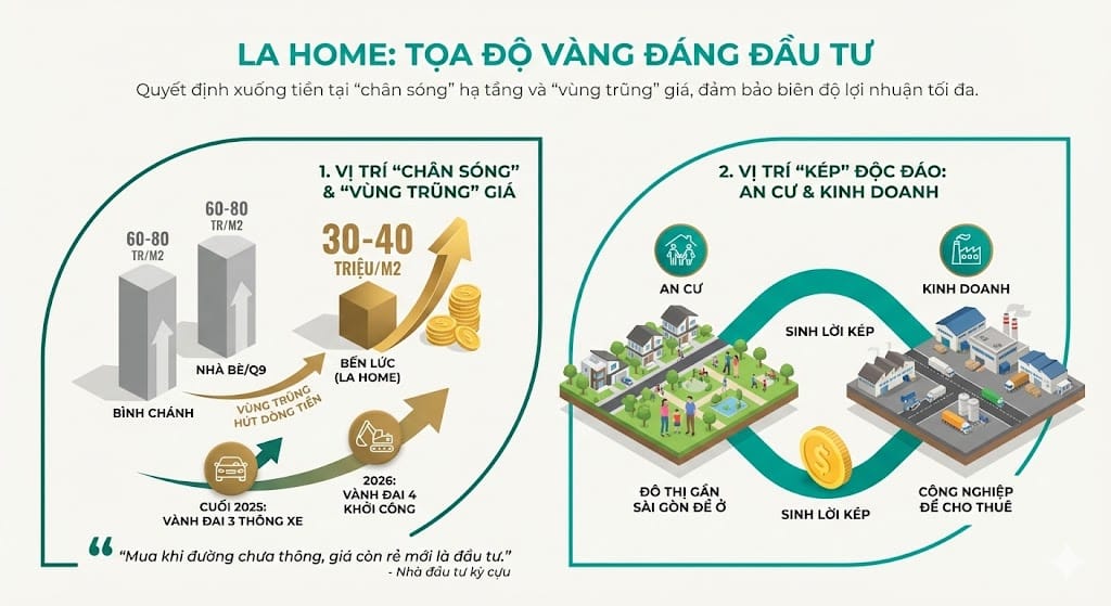 Đầu tư vào LA Home thời điểm này là quyết định xuống tiền tại “chân sóng” hạ tầng và “vùng trũng” giá, đảm bảo biên độ lợi nhuận tối đa trong tương lai gần.