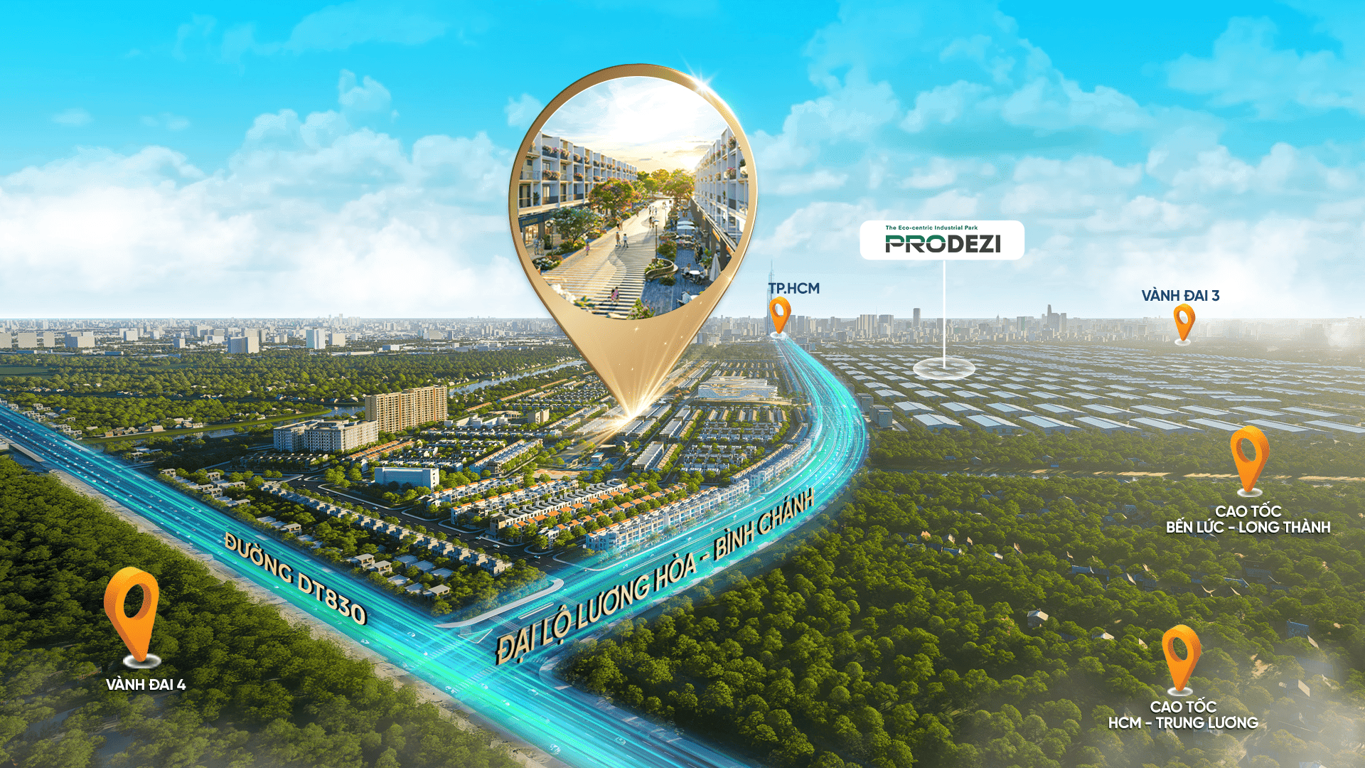 Trục lộ 60m Lương Hòa – Bình Chánh là tuyến đường huyết mạch kết nối trực tiếp dự án với khu vực phía Tây TP.HCM và đường Võ Văn Kiệt nối dài. Việc nằm ngay mặt tiền của đại lộ lớn không chỉ giúp việc kinh doanh tại các căn shophouse trở nên thuận lợi mà còn đảm bảo tính thanh khoản cực cao cho dự án trong tương lai.